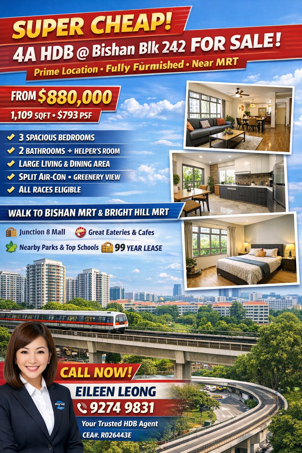 In conclusion, this super cheap 4A HDB flat in Bishan represents a rare opportunity to own a spacious, well-located, and value-for-money property in Singapore. With strong keywords such as “cheap HDB Bishan,” “best property deal Singapore,” and “affordable central HDB,” this listing is highly competitive in today’s market. Whether you are a first-time buyer, a growing family, or an investor, this property offers a compelling combination of price, location, and lifestyle benefits.